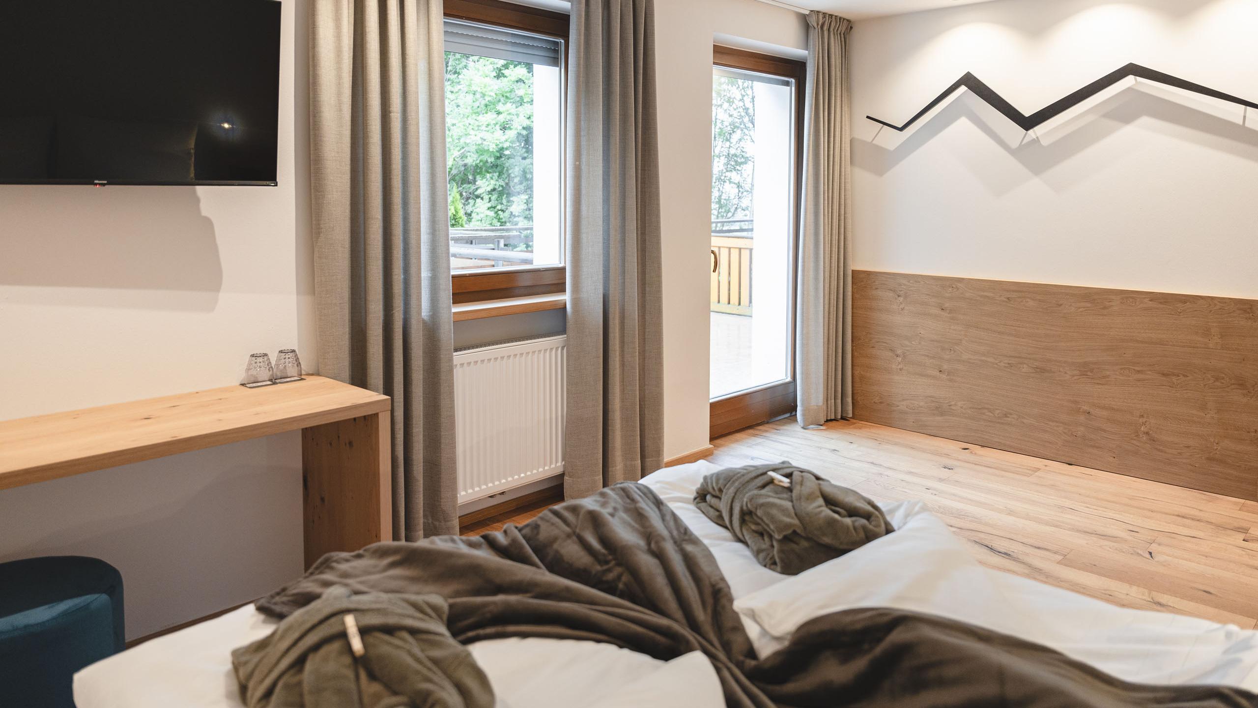 Le nostre Family Suite Superior offrono una vista fantastica sulle montagne e sulle vallate circostanti. Per godersela appieno non c’è posto migliore del balcone.