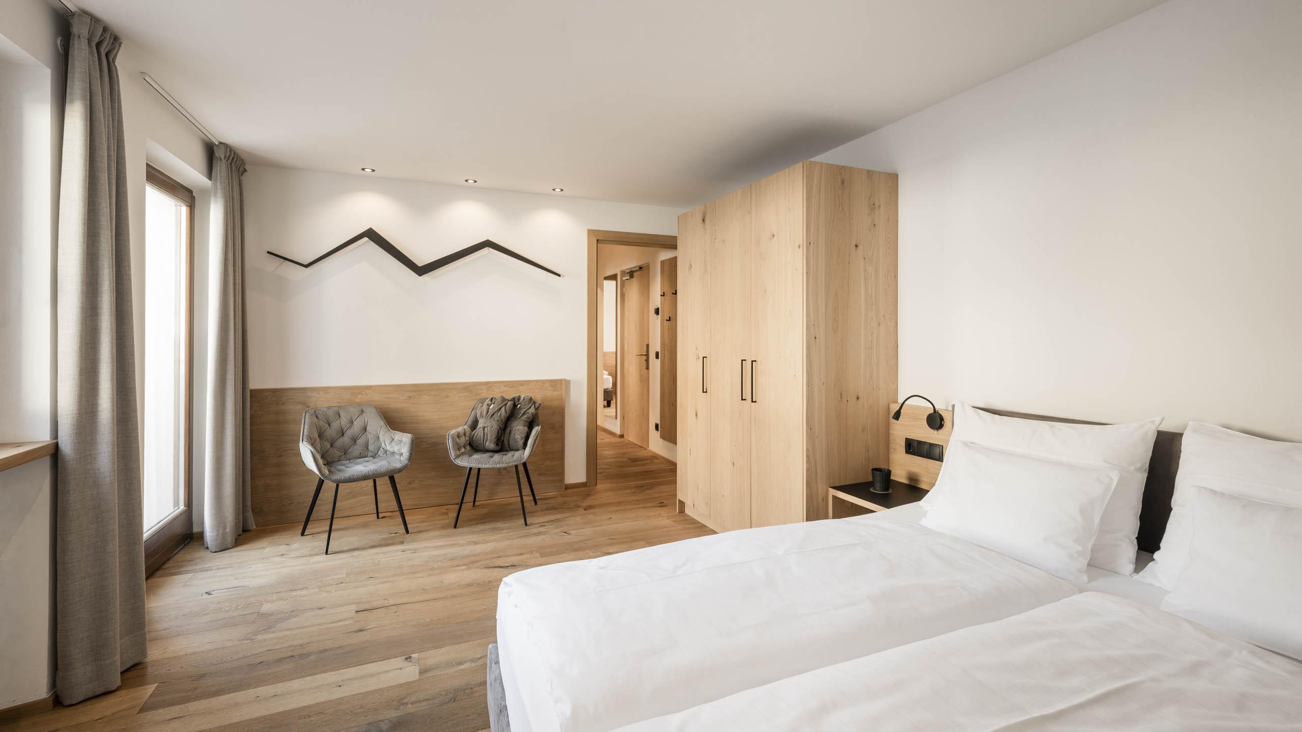 Die Familiensuite Lahnerhof bietet auf 40 m², viel Raum für entspannte Urlaubstage mit der Familie. Zwei separate Schlafzimmer sorgen für Komfort und Privatsphäre und machen die Suite ideal für 2 bis 4 Personen.